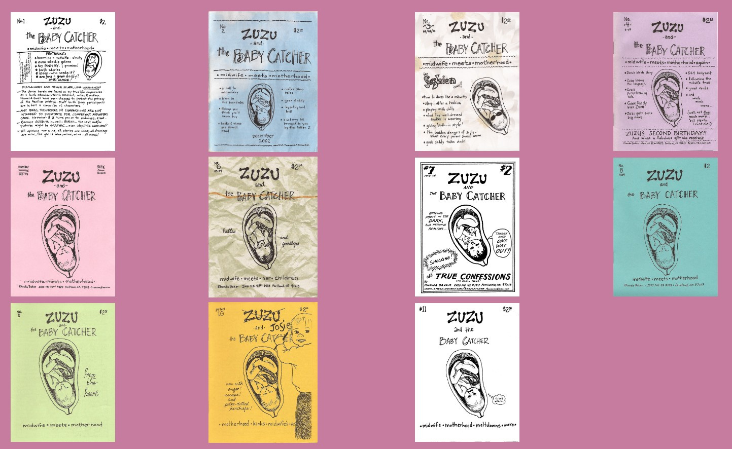 (Image is a screen shot from my website of the covers of the 11 issues of my zine, Zuzu and the Baby Catcher)